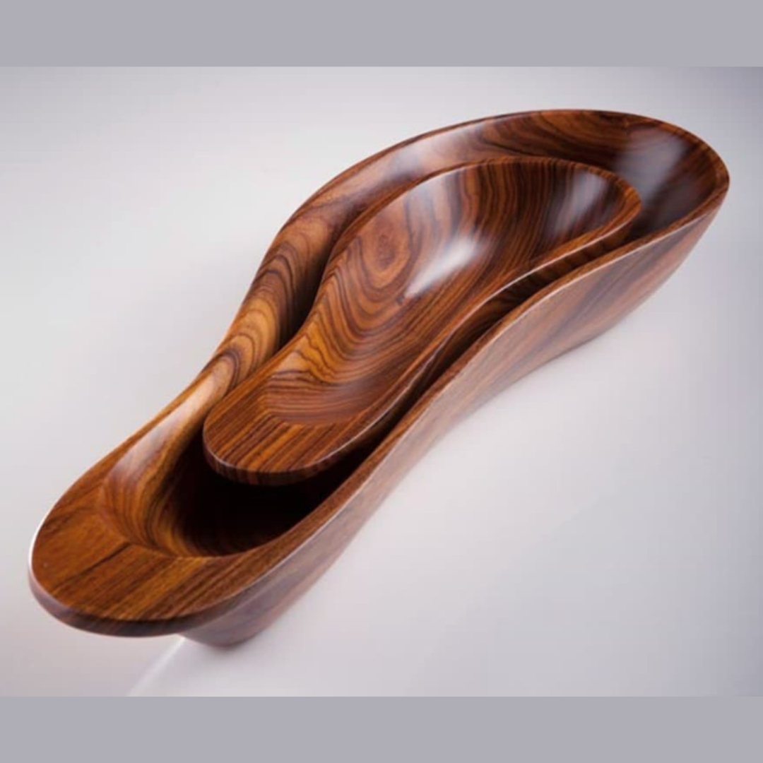 This product is crafted from reclaimed Bolivian Rosewood, hand-carved and hand-polished to a satin finish. Not intended to hold prepared foods or liquids, it is an ideal statement piece for any space in your home. Imperfections such as cracks and blemishes are characteristic of the natural beauty of the wood and our Ki-design philosophy mandates we never attempt to eliminate them.